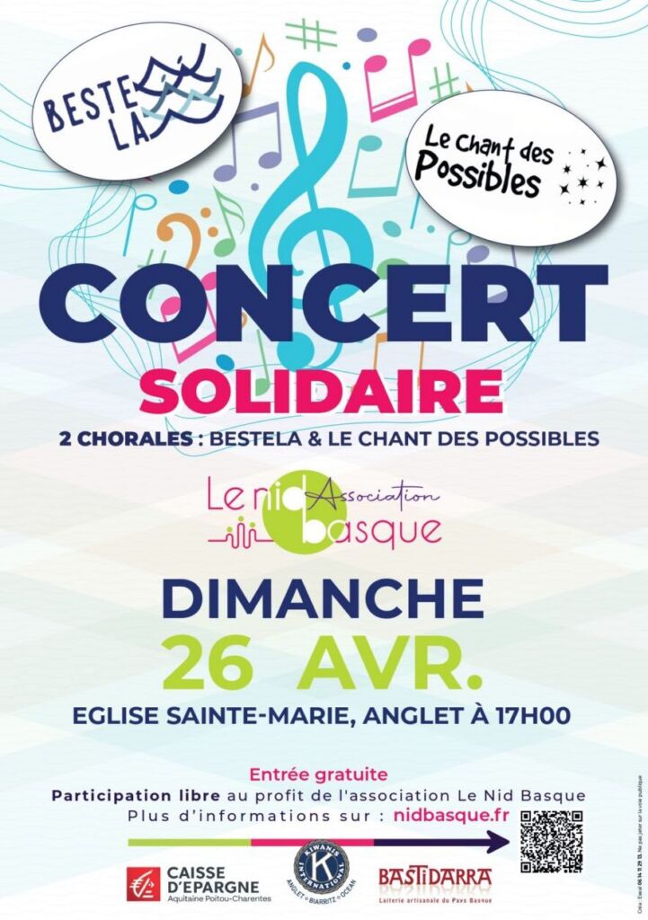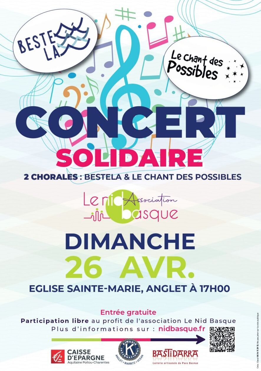 L’association Le Nid Basque organise un concert de chorales le dimanche 26 avril à 17h à l’Église Sainte-Marie à Anglet.